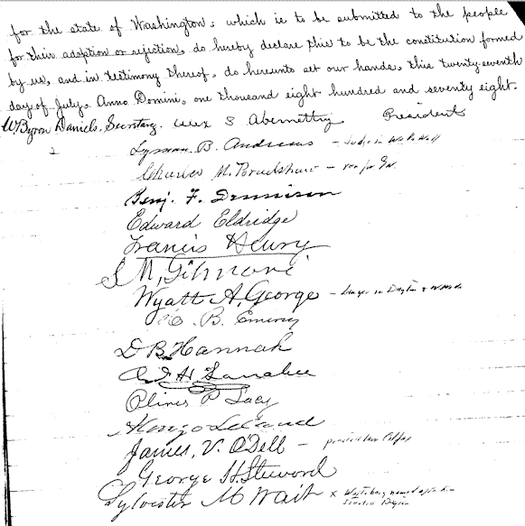 This is a scan of a certified copy of the 1878 Washington State Constitution.